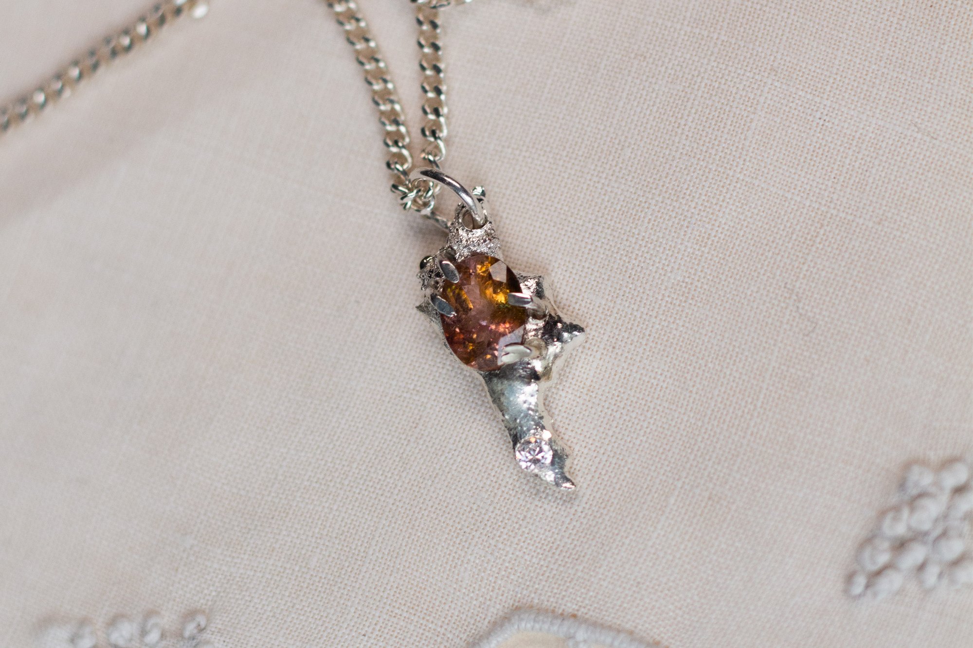 Unique necklace from "Vestigio #1" collection, made from fine silver, bicolor tourmaline and topaz.